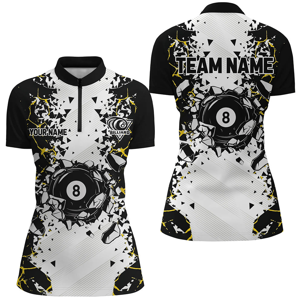 Funny 8 Ball Pool Crack Pattern Custom Women Billiard Polo & 1/4 Zip Shirts, 8 Ball Billiard Jerseys TDM2947
