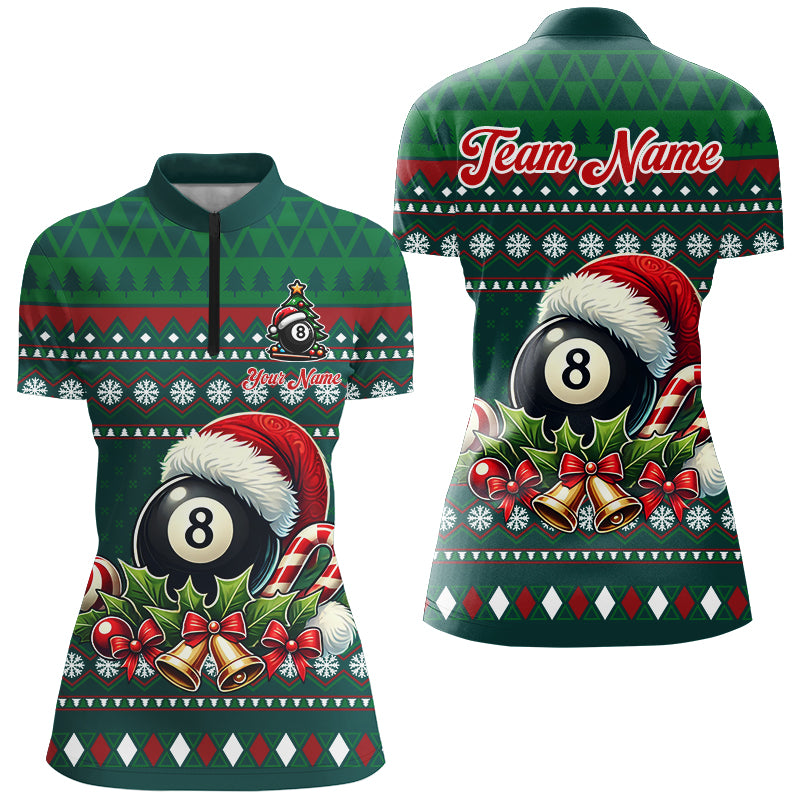Funny Green Christmas Santa 8 Ball Pool Billiard Shirts For Women Custom Xmas Billiard Jerseys TDM3012