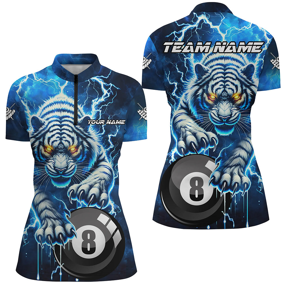 Personalized Thunder Lightning Tiger Billiard Shirt For Women Custom Blue Billiard League Pool Jersey TDM3027