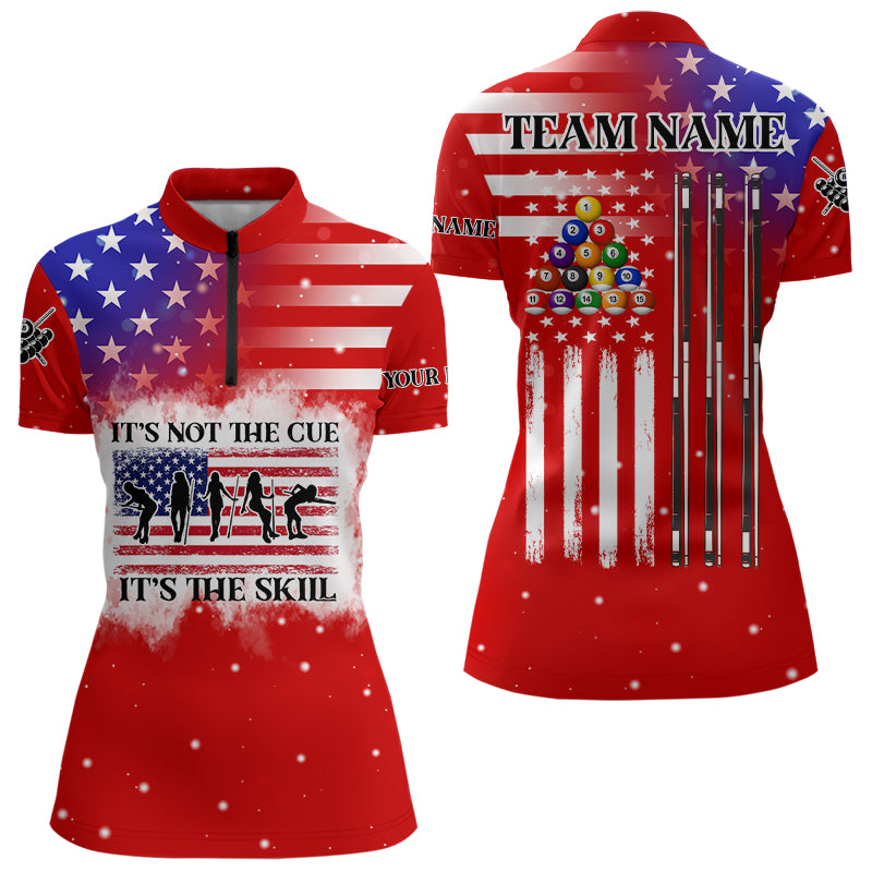 It's The Skill Custom American Flag Women Billiard Shirt Funny Billiard Jersey |Red TDM3121