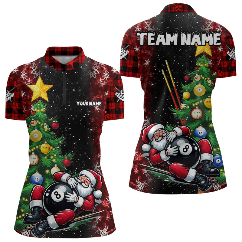Black And Red Funny Santa Christmas Women Billiard Shirts Custom Christmas Pine Tree Billiard Apparel TDM3129