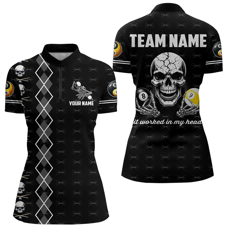 Billiard Skull 8 Ball & 9 Ball It Worked In My Head Custom Women Billiard Shirt Funny Billiard Jersey TDM3195