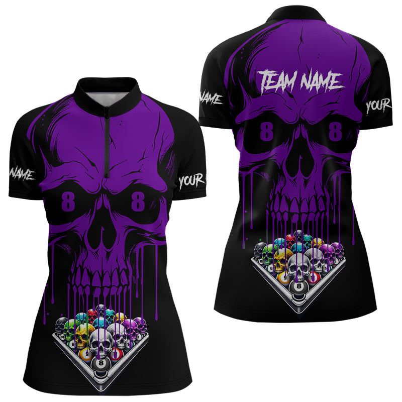 Personalized Purple Skull Billiard Balls Funny Pool Shirts For Women Custom Unique Billiard Jerseys TDM3200