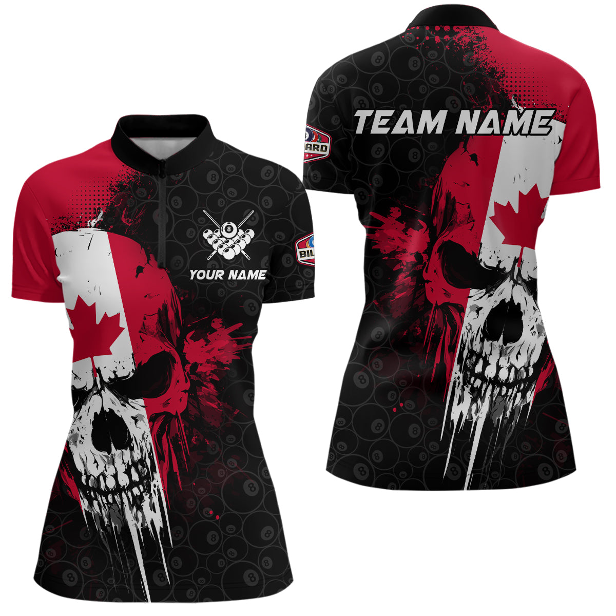 Canada Flag Grunge Skull 8 Ball Pattern Billiard Shirts For Women Custom Patriotic Billiard Jerseys TDM3207
