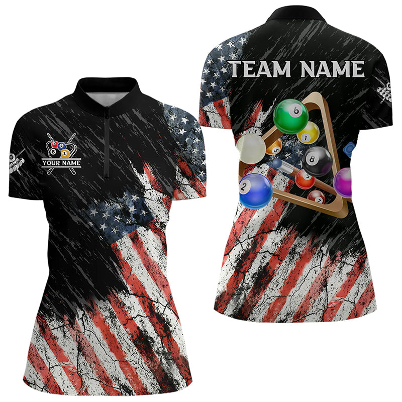 Personalized Retro Grunge American Flag Women Billiard Shirts Custom 3D Pool Ball Billiard Jerseys TDM3350