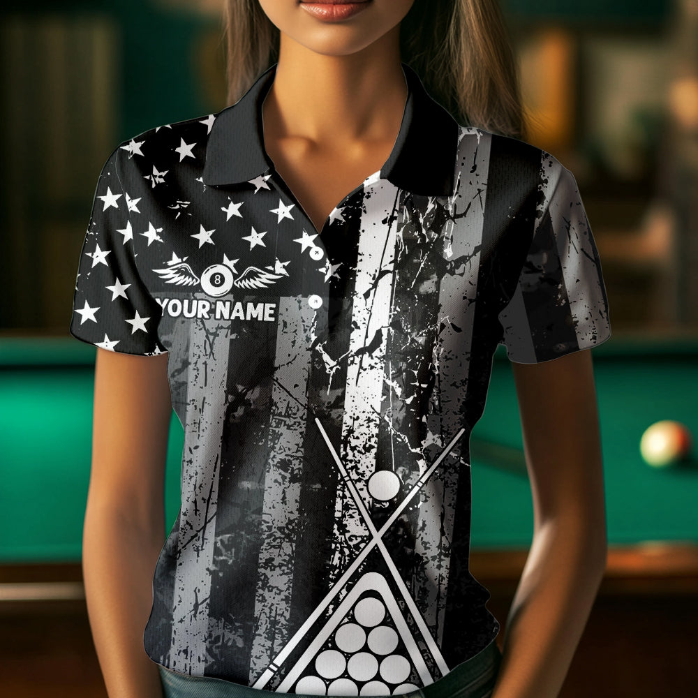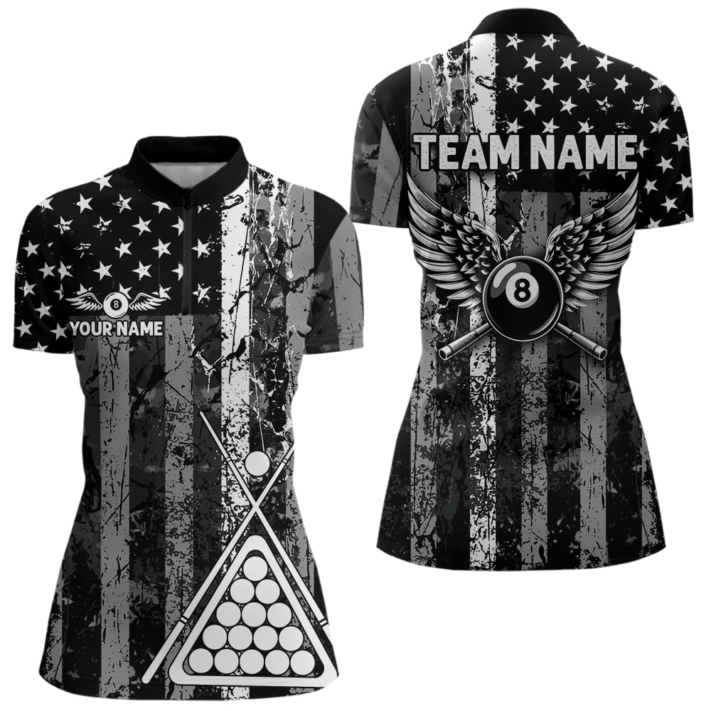Black White 8 Ball Wings Grunge US Flag Patriotic Billiard Shirts For Women Custom Billiard Jerseys TDM3572