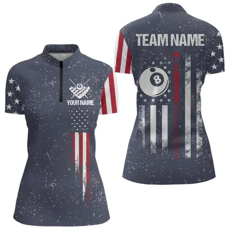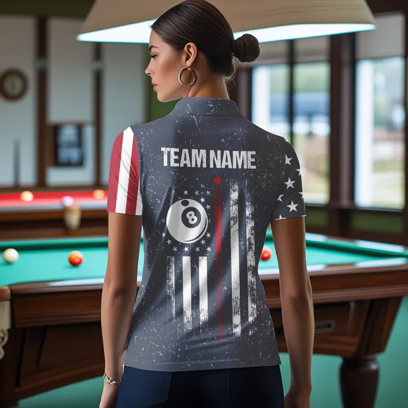 Grunge Navy American Flag 8 Ball Billiard Shirt For Women Custom Patriotic Billiard Shirt Pool Jersey TDM3663