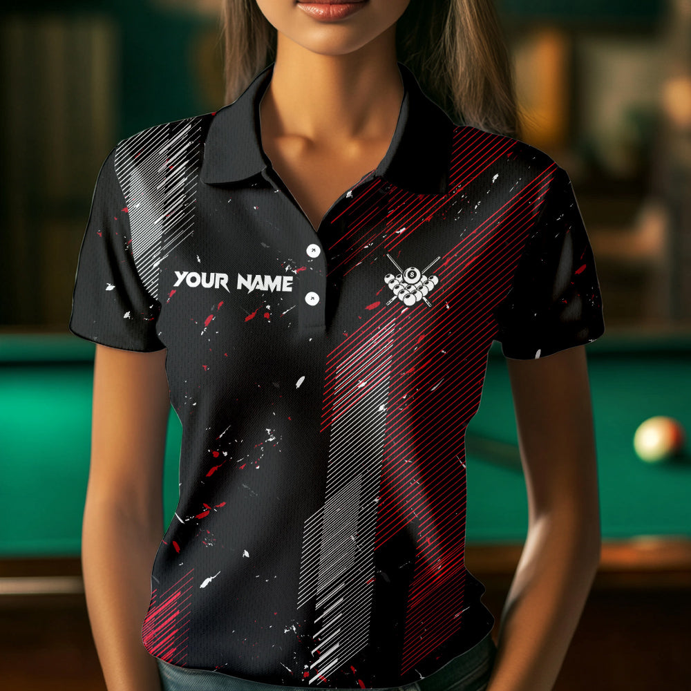Grunge Black And Red 8 Ball Pool Lights Women's Billiard Shirts Custom Billiard Jersey Polo & 1/4 Zip TDM3780