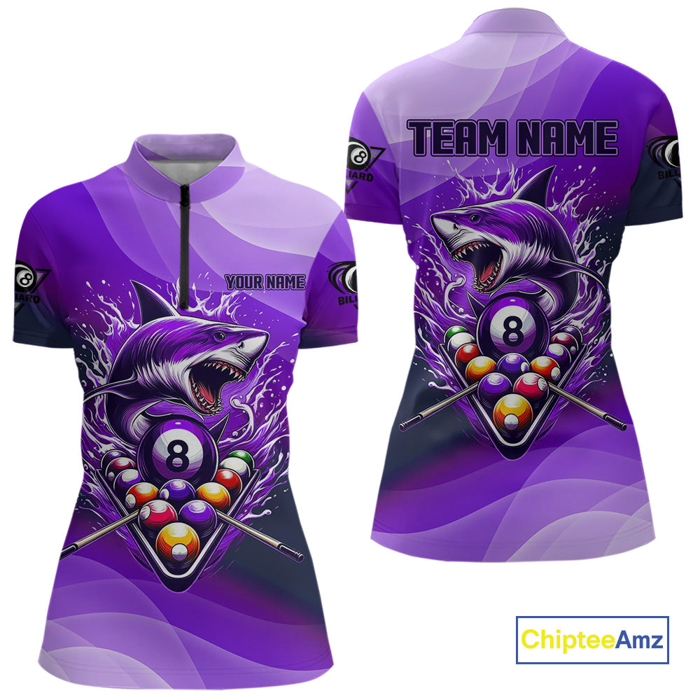 Personalized Purple Pool Ball Shark Billiard Shirts For Women Custom Team League Billiard Jerseys TDM3842