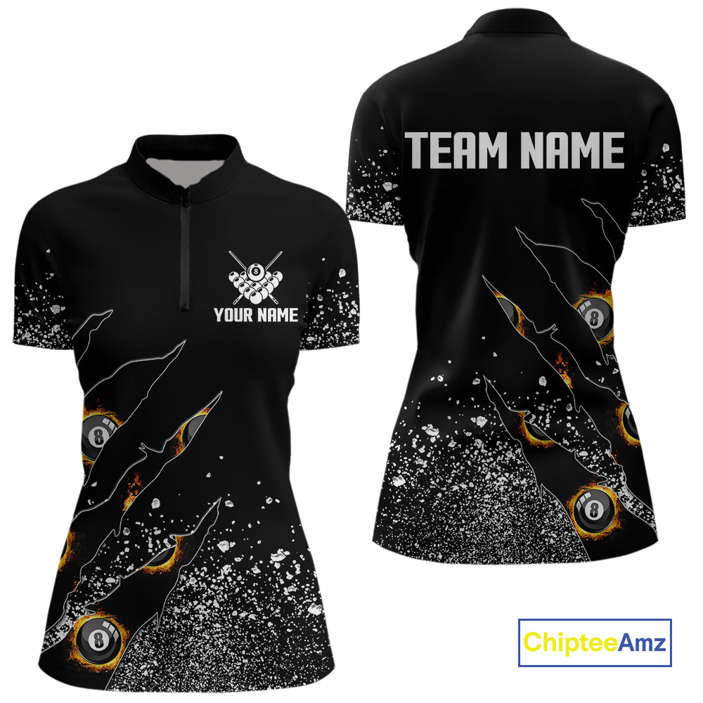 Custom 8 Ball Fire Black Grunge Billiard Shirts For Women, Billiard Team Shirts Pool Jerseys TDM4015
