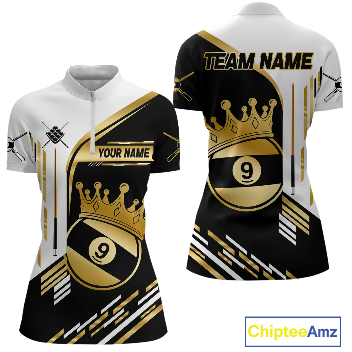 Personalized Golden 9 Ball Pool Crown Billiard Shirt For Women Custom Billiard Team Jerseys Uniform TDM4183