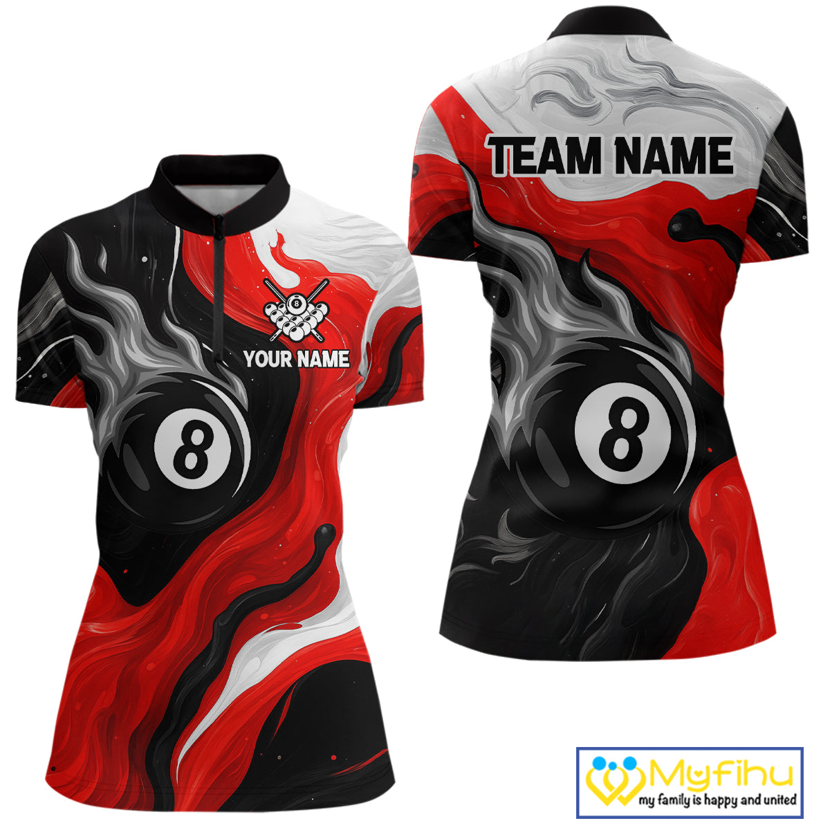 Personalized Black, Red And White 8 Ball Flame Billiard Shirt For Women Custom Pool Team Jerseys TDM4188