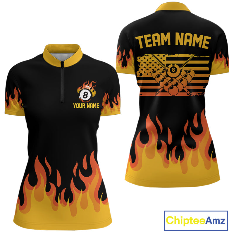 Personalized Orange Flaming Billiard Jersey For Women Custom 8 Ball Pool Billiard Team Shirts TDM4296