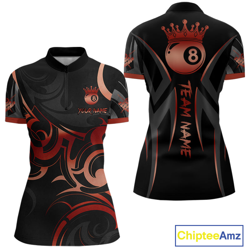 Black And Red 8 Ball Crown Tribal Billiard Shirt For Women Custom Pool Team Jersey Polo & 1/4 Zip TDM4416