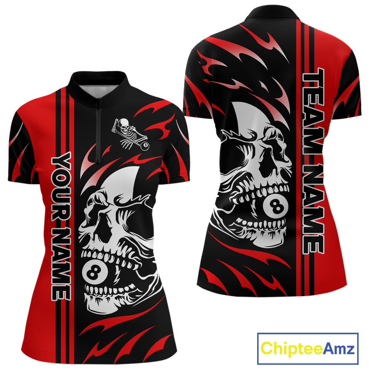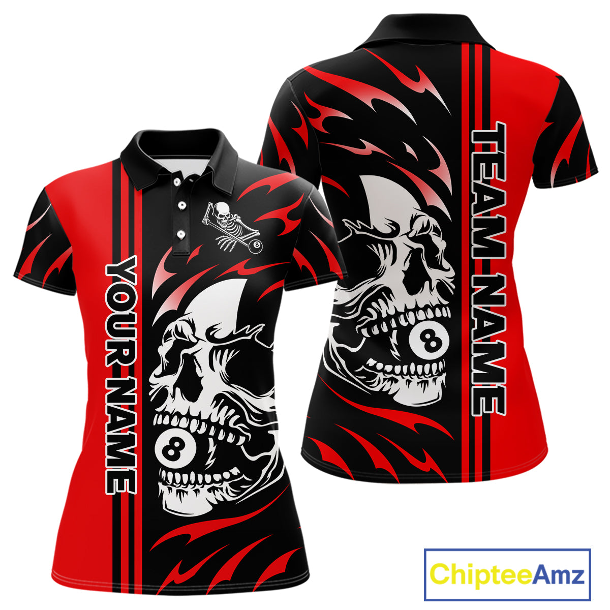Personalized Red 8 Ball Skull Billiard Shirt For Women Custom Pool Team Jersey, Billiard Outfit TDM4459