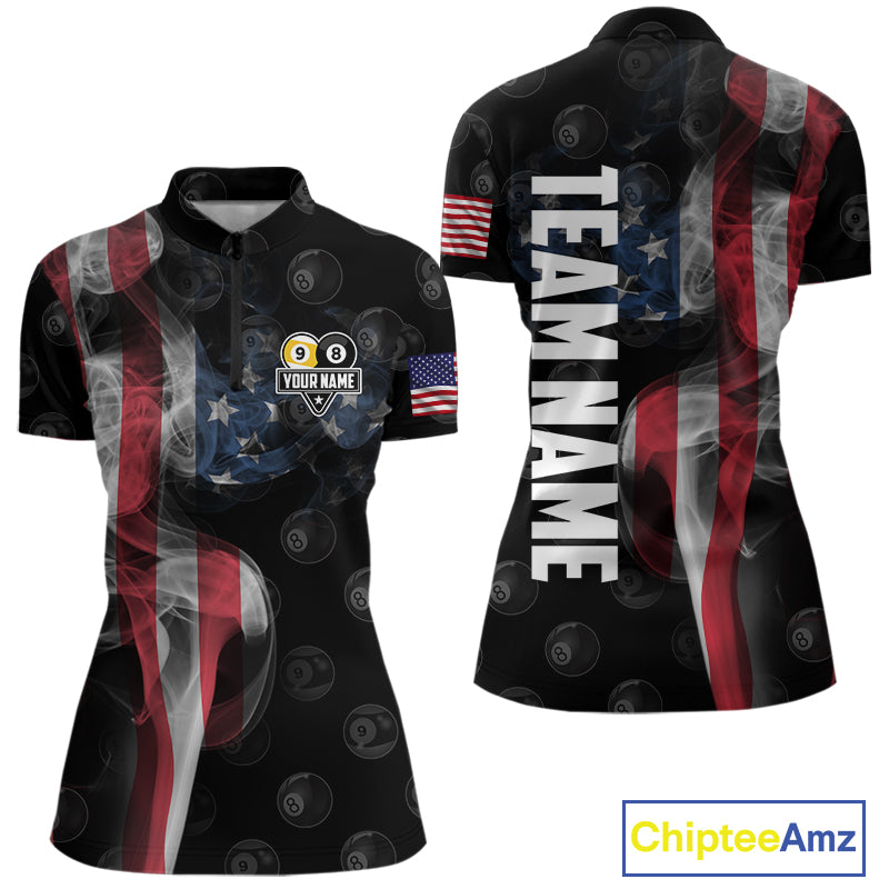 Customized Vintage Smoke US Flag Ball Billiard Shirt For Women, 8 Ball & 9 Ball Patriotic Pool Jersey TDM4467