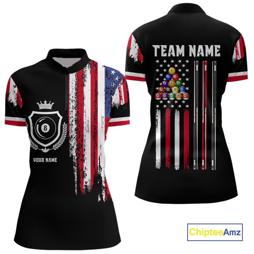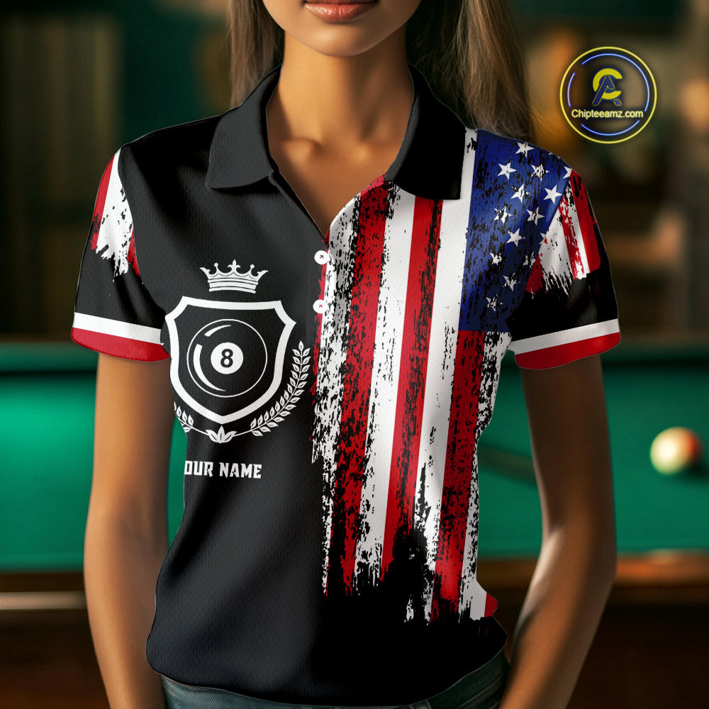 Personalized Grunge American Flag 9 Ball Pool Team Shirt For Women Custom Patriotic Billiard Shirts TDM4734