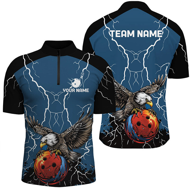 Men's bowling Polo, Quarter Zip shirts Custom Eagle bowling lightning storm team league jerseys | Blue NQS7893