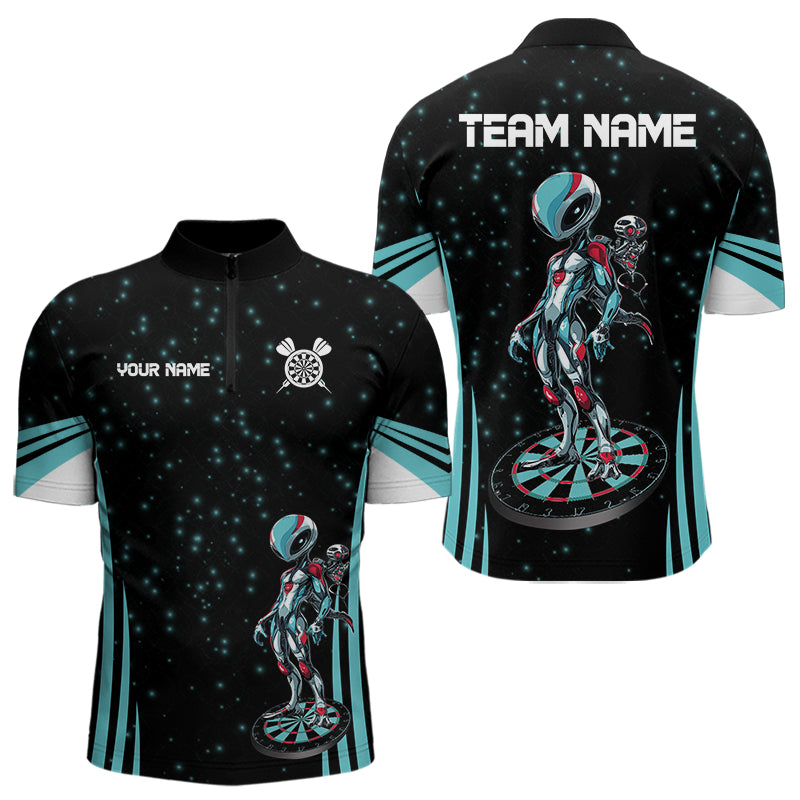 Custom Turquoise Alien And Dartboards Dart Shirts For Men, Dart Jerseys NYN0027