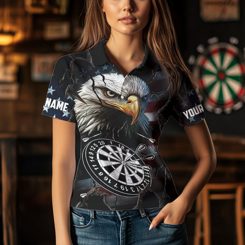 Personalized Eagle American flag Dart Polo, Quarter Zip Shirt for Women Custom Patriotic Darts Jersey NQS9521