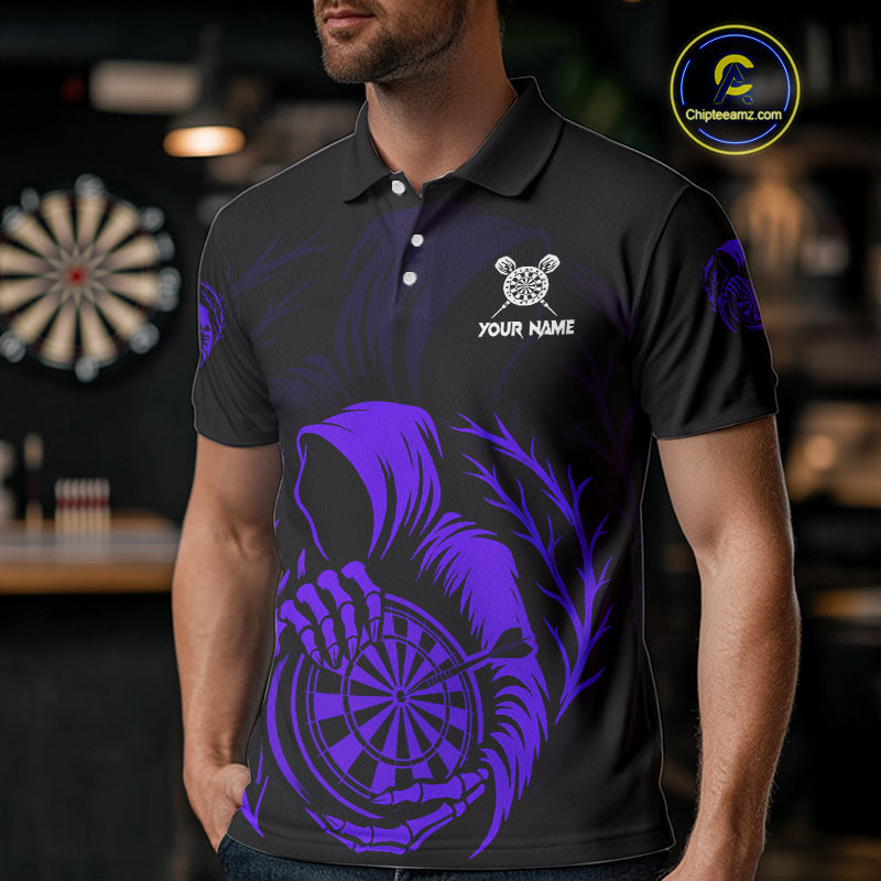 Custom Black And Purple Grim Reaper Dartboard Dart Men Polo Shirt Outfits Dart Jerseys NYN1637