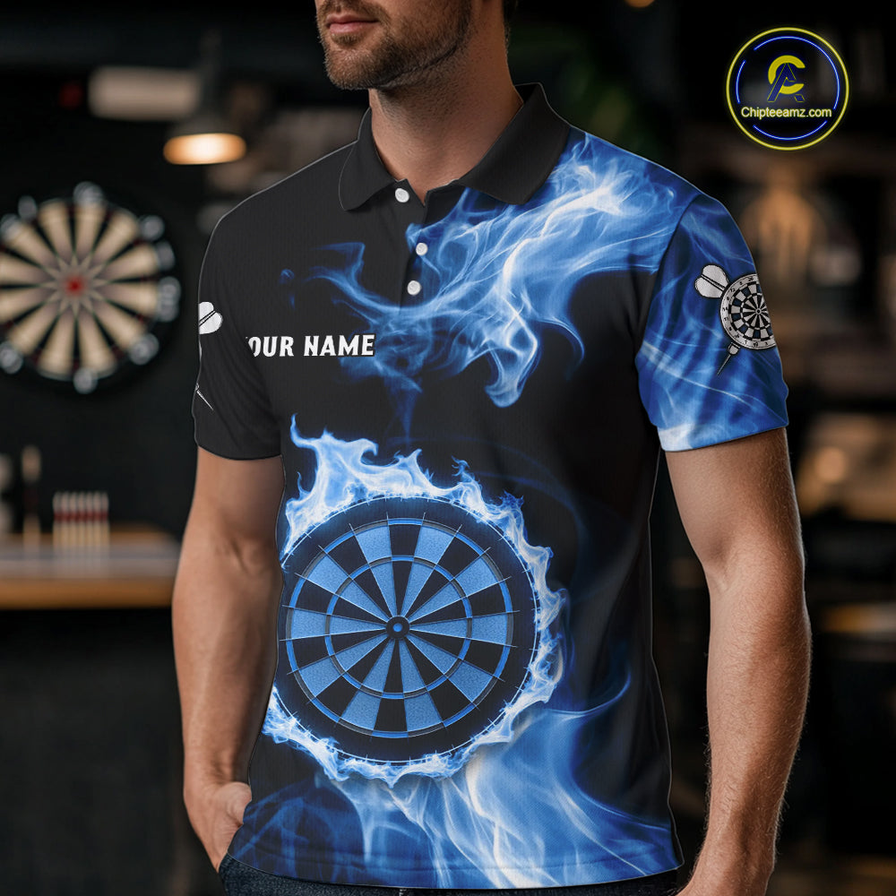 Custom Black And Blue Flames Dartboard Dart Men Polo Jerseys Outfits Dart Team Shirt NYN1663