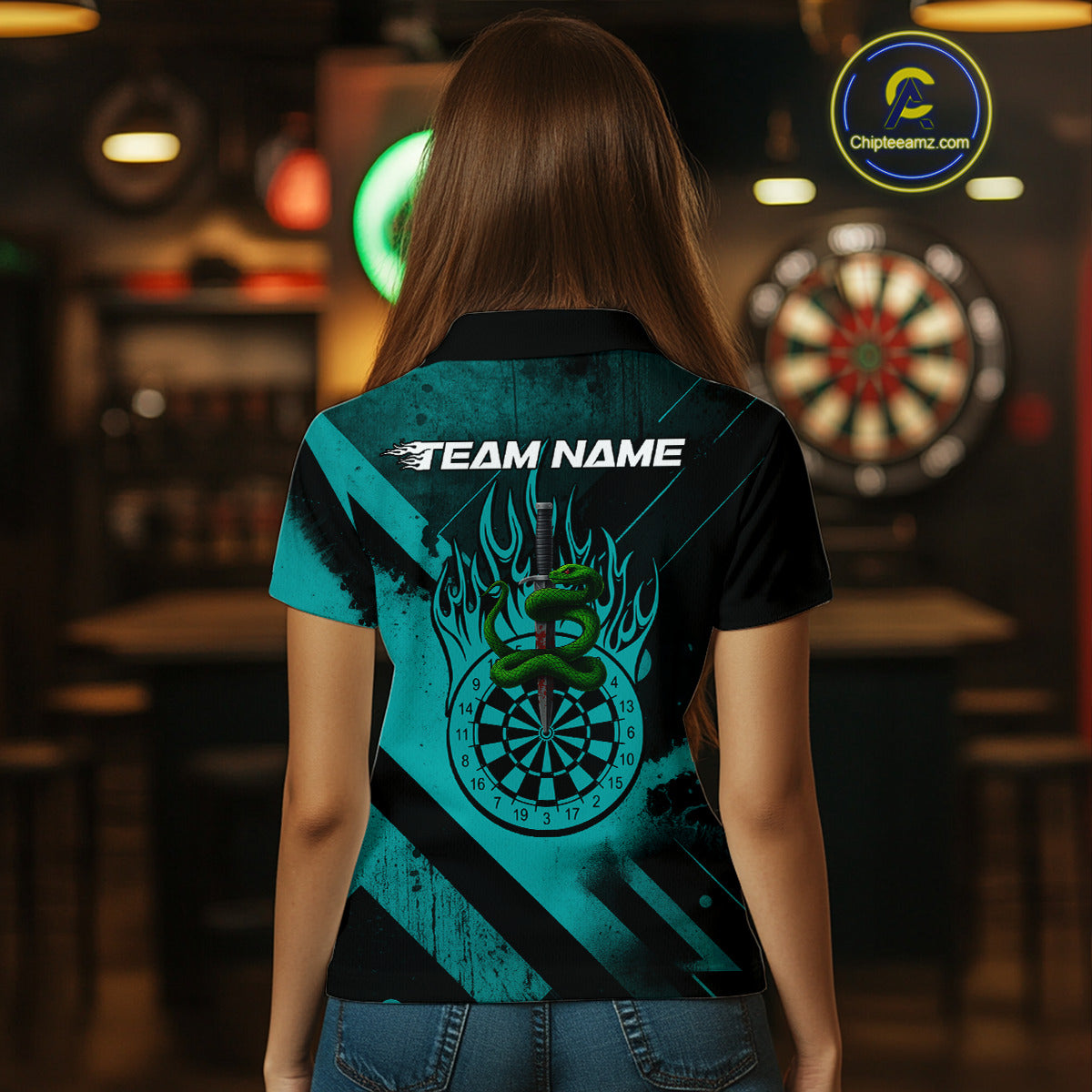 Custom Green Cobra Flames Dartboard Turquoise Grunge Dart Women Polo Jerseys Dart Shirt Gifts NYN1644