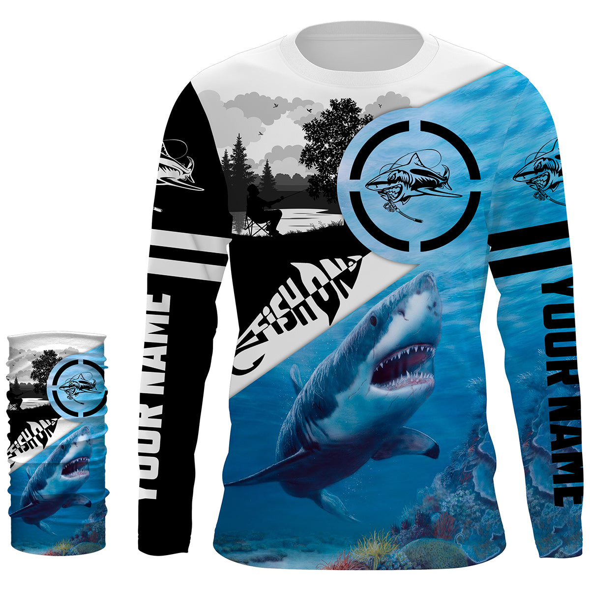 Shark fishing fish on fishing shirts Performance Long Sleeve UV protection Customize NQS1084
