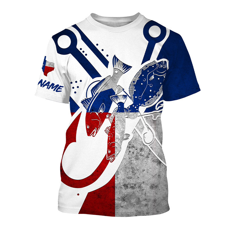 Texas inshore Slam Redfish, Trout, Flounder Custom name Texas fish hook Flag Long sleeve Fishing Shirt NQS4182
