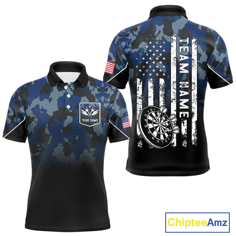 Black and Blue Camo Men Darts Shirts Custom American Flag patriotic Team Darts Jersey NQS11120