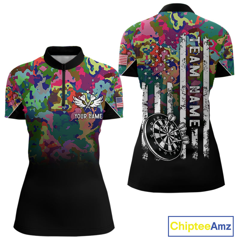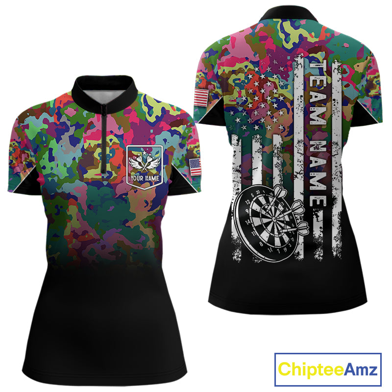 Black and Colorful Camo Women Darts Shirts Custom American Flag patriotic Team Darts Jersey NQS11122