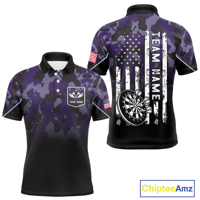 Black and Purple Camo Men Darts Shirts Custom American Flag patriotic Team Darts Jersey NQS11121