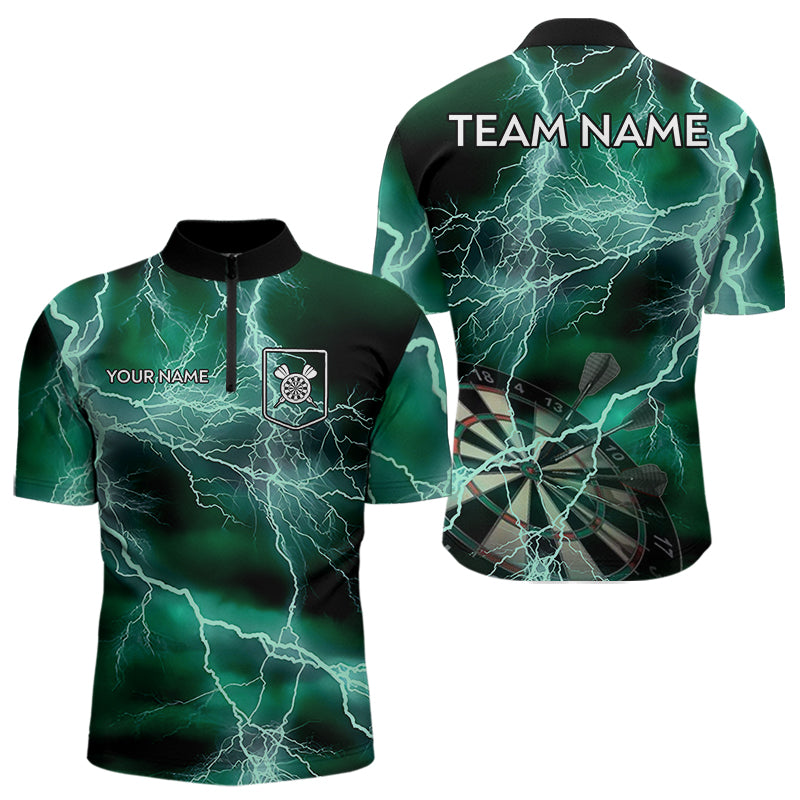 Black Turquoise Thunder Lightning Dart Shirt With Pocket For Men Custom Dart Jersey TDM3802
