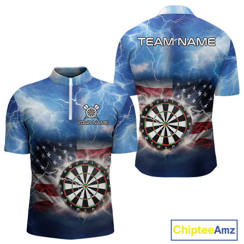 Blue American Flag Thunder Lightning Darts Shirt For Men Custom Darts Jersey Team Polo & 1/4 Zip TDM5270