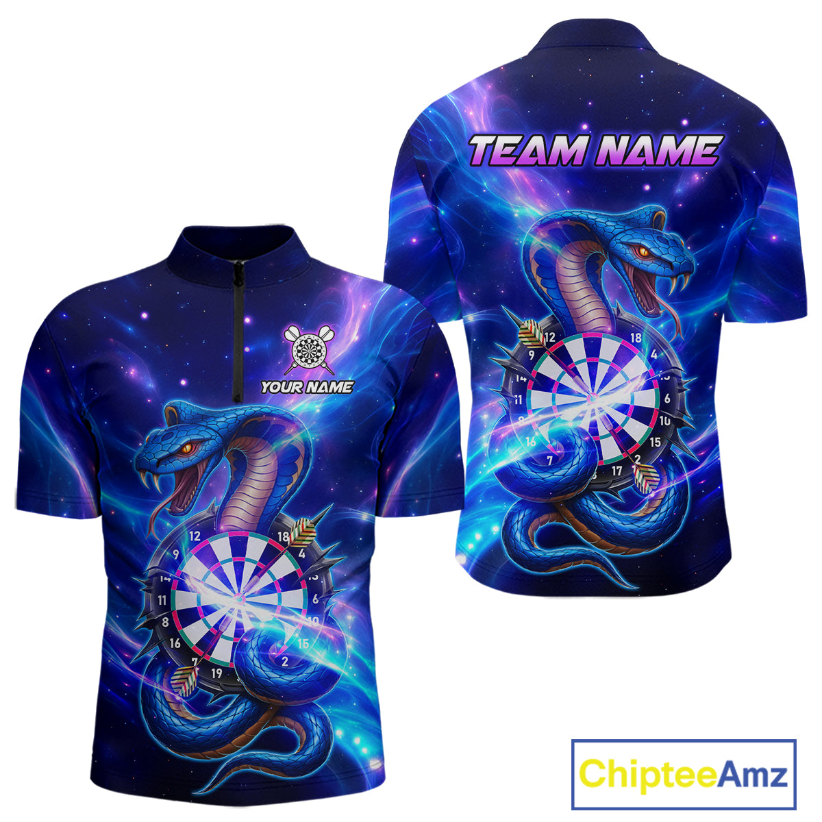 Galaxy Blue Custom Cobra Snake Darts Shirt For Men, Darts League Jersey Team Polo & 1/4 Zip TDM5274