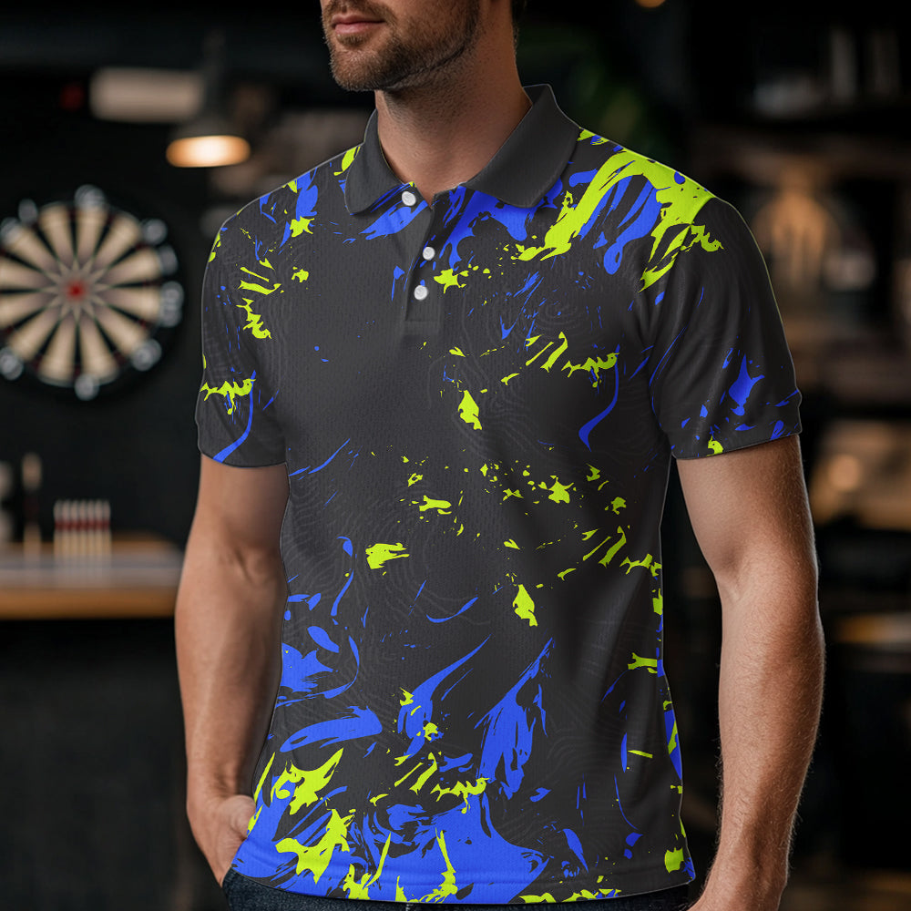 Blue And Green Splatter Personalized Dart Polo Shirts For Men, Dart Jerseys For Team IPHW8501
