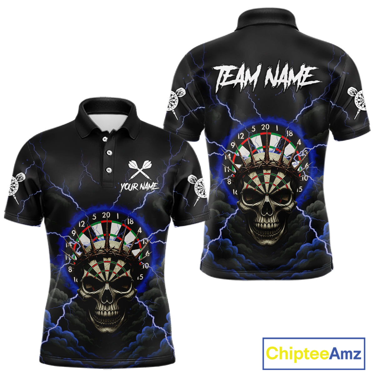 Custom Lightning Blue Smokes Skull Dartboard Men Darts Polo Shirt Skull Dart Jerseys NYN1917