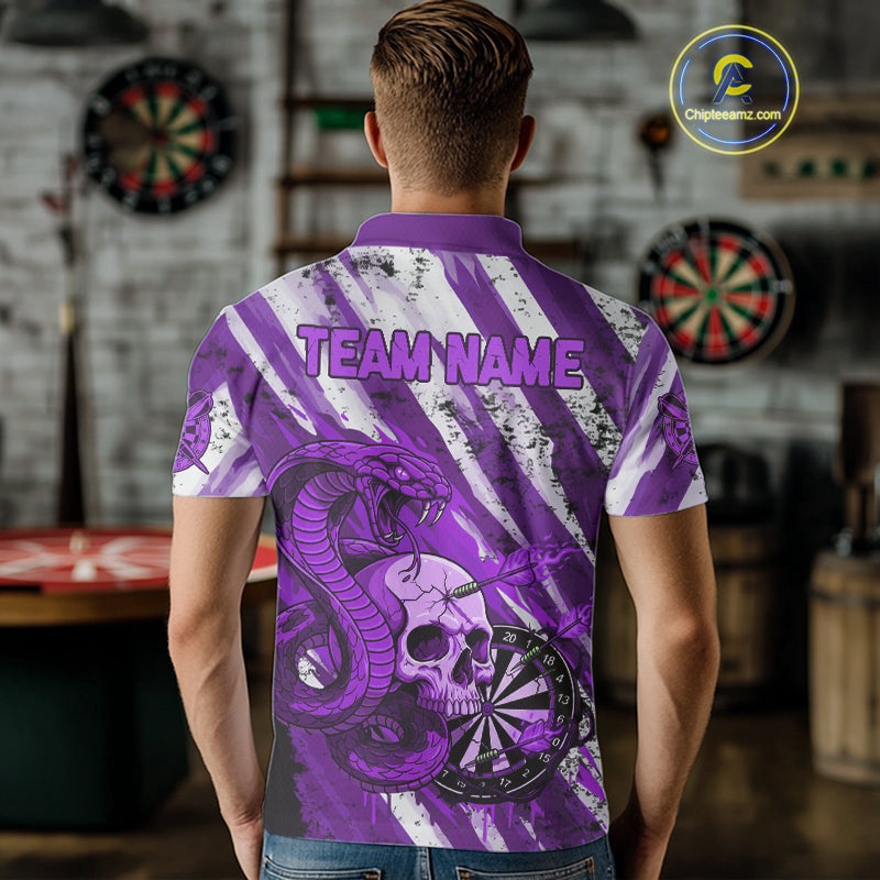 White And Purple Cobra Skull Dartboard Custom Men Darts Polo Shirt Grunge Dart Jerseys NYN1931