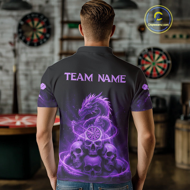 Custom Purple Galaxy Dragon Skulls Dartboard Men Darts Polo Shirt Dart Team Jerseys NYN1932