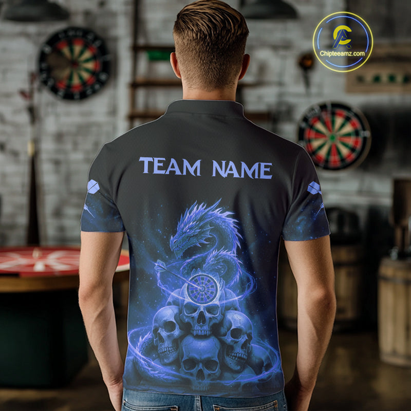 Custom Blue Galaxy Dragon Skulls Dartboard Men Darts Polo Shirt Dart Team Jerseys NYN1934