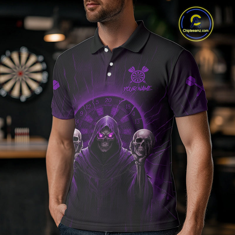 Custom Purple Grim Reaper Grey Skull Dartboard Men Darts Polo Shirt Grunge Dart Jerseys NYN1936