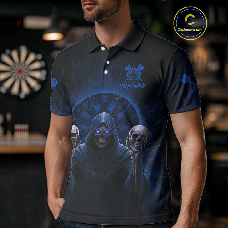 Custom Blue Grim Reaper Grey Skull Dartboard Men Darts Polo Shirt Grunge Dart Jerseys NYN1937