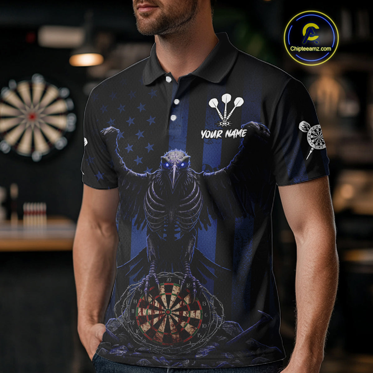 Blue Gothic Eagle Skull Dartboard Custom Men Darts Polo Shirt Grunge US Flag Dart Jerseys NYN1944
