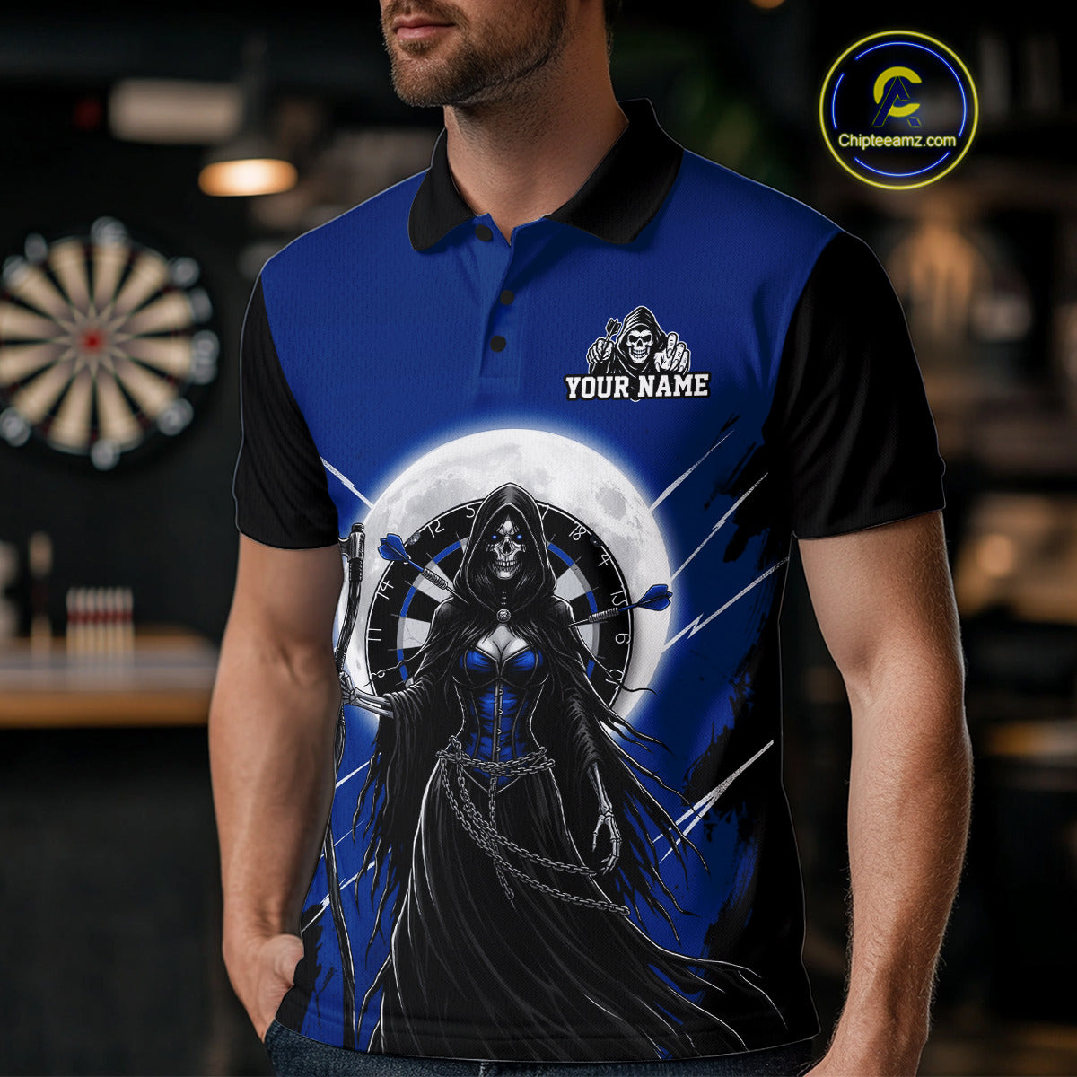 Black And Blue Grim Reaper Moon Dartboard Custom Men Darts Polo Shirt Gothic Dart Jerseys NYN1948