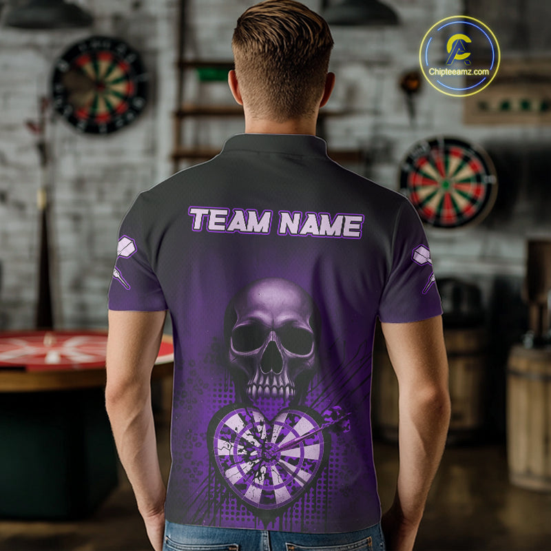 Black And Purple Skull Camo Heart Dartboard Darts Polo Shirt For Men Grunge Dart Jerseys NYN1963