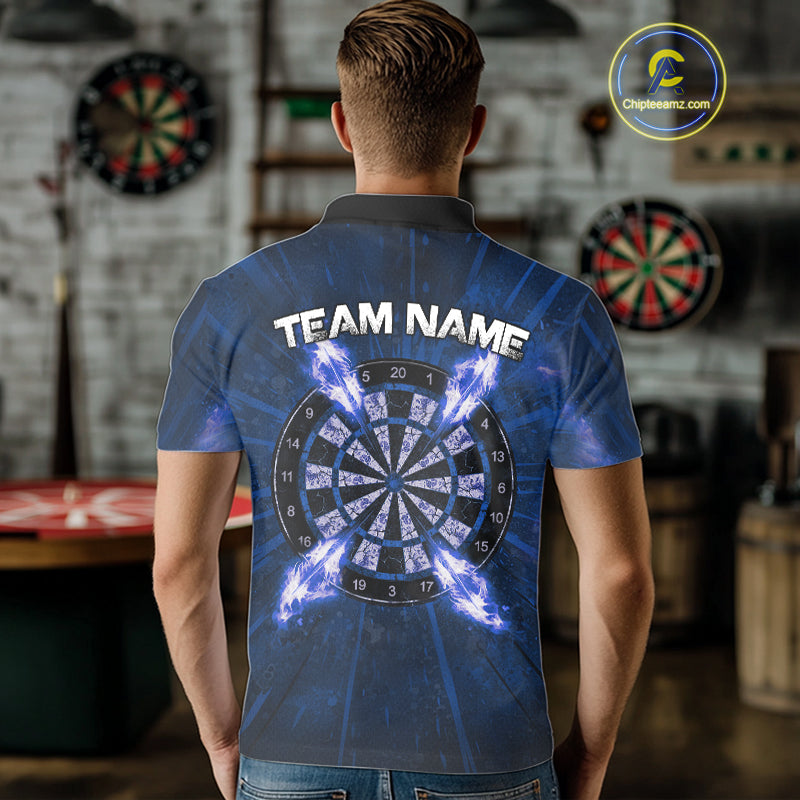 Custom Blue Flames Dart Arrow Cracked Skull Men Darts Polo Shirt Grunge Dart Gifts NYN1991