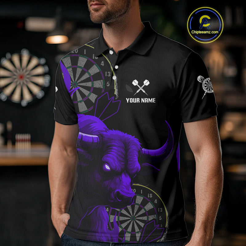 Purple Ferocious Bull Grunge Dartboard Men Polo Darts Shirt Custom Name & Team Jersey NYN2005