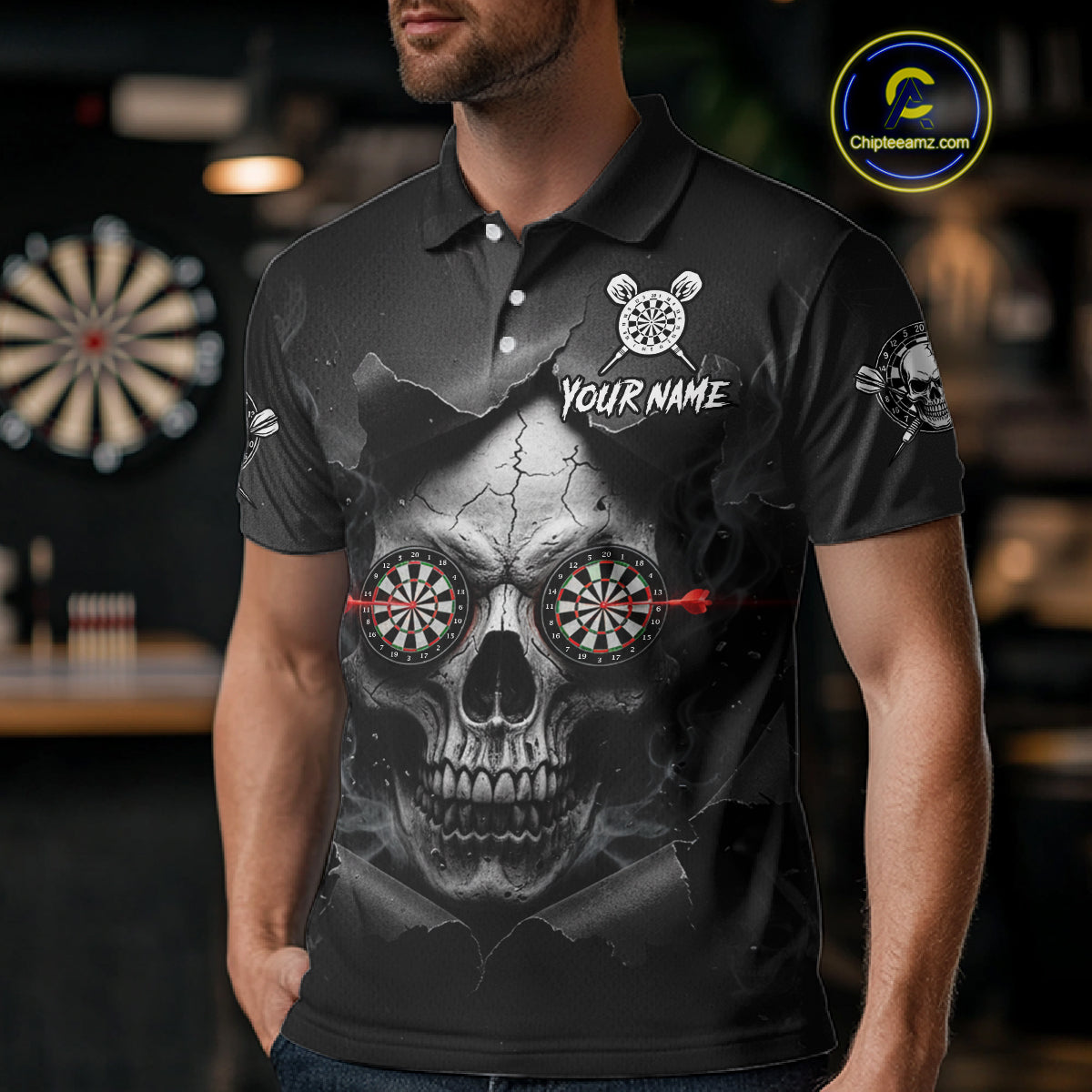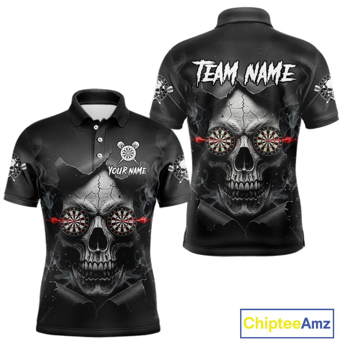 Black Smokes Skull Torn Grunge Dartboard Custom Men Polo Darts Shirt Dart Jersey NYN2012