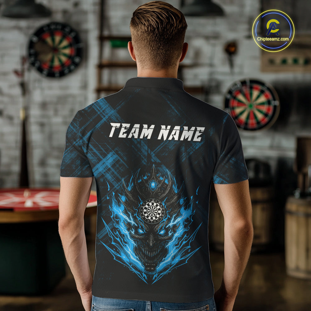 Blue Skull Lightning Thunder Grunge Dartboard Custom Men Polo Darts Shirt Dart Gifts NYN2014