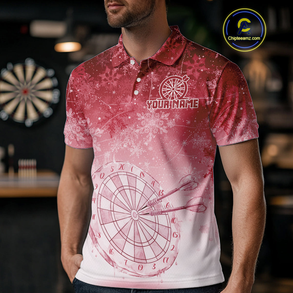 White & Red Snowflakes Ice Dartboard Custom Polo Dart Shirt For Men Xmas Dart Jerseys NYN2025
